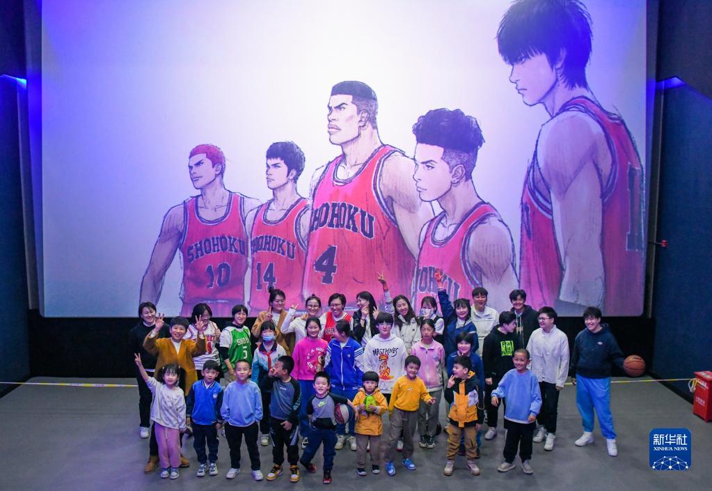 这是“疆来”女子篮球俱乐部成员一起观看电影《灌篮高手》后合影(4月20日摄)。新华社记者 王菲 摄