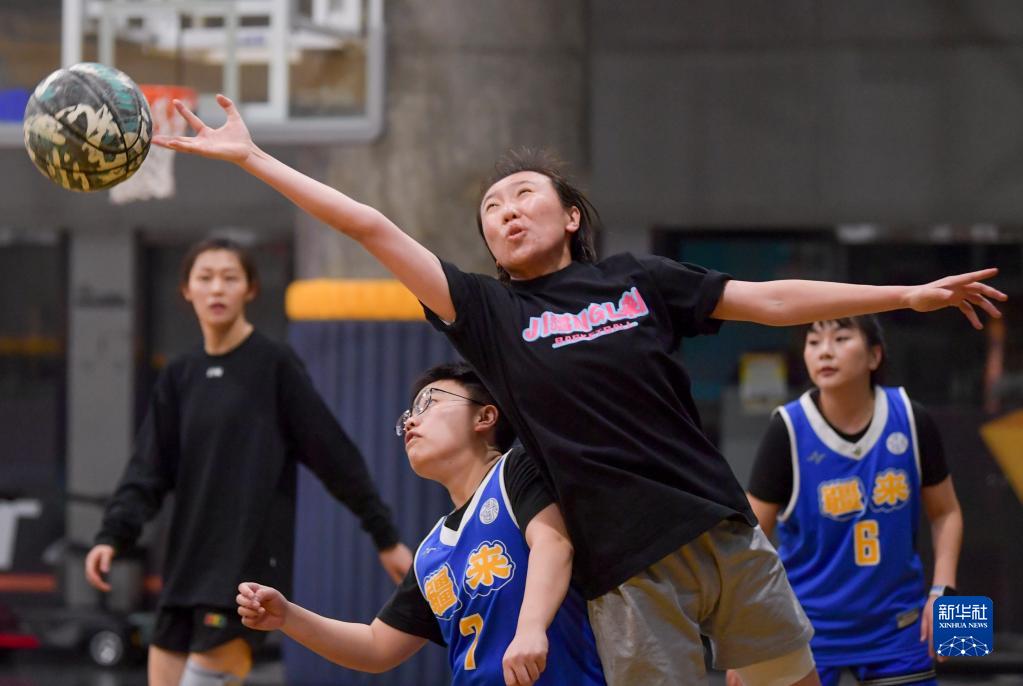 这是“疆来”女子篮球俱乐部成员蒙古族姑娘明德尔玛(右)在日常训练中(3月5日摄)。新华社记者 王菲 摄
