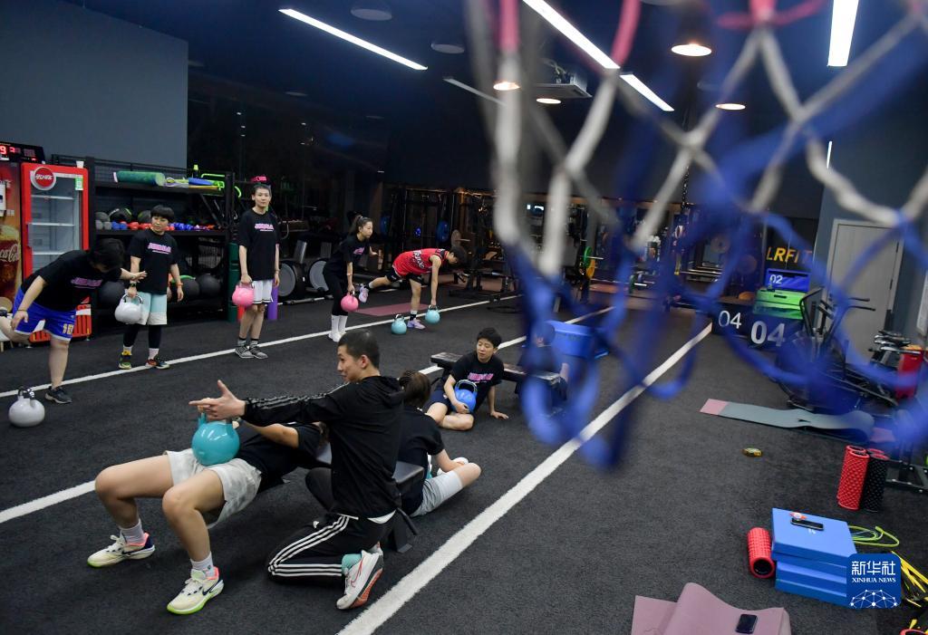 这是“疆来”女子篮球俱乐部部分成员在健身房进行体能训练(3月7日摄)。新华社记者 王菲 摄