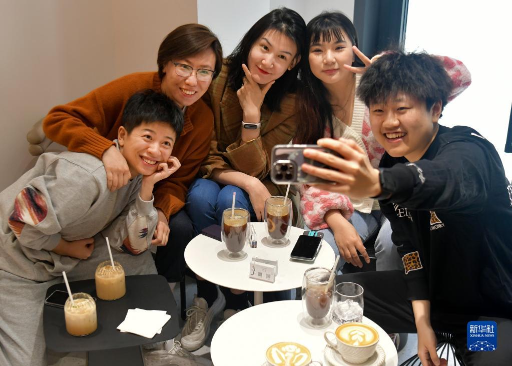 这是“疆来”女子篮球俱乐部部分成员闲暇聚会时合影留念(3月6日摄)。新华社记者 王菲 摄
