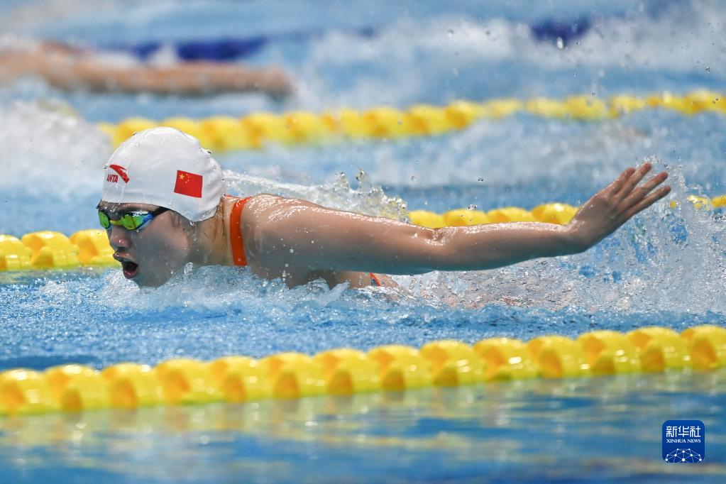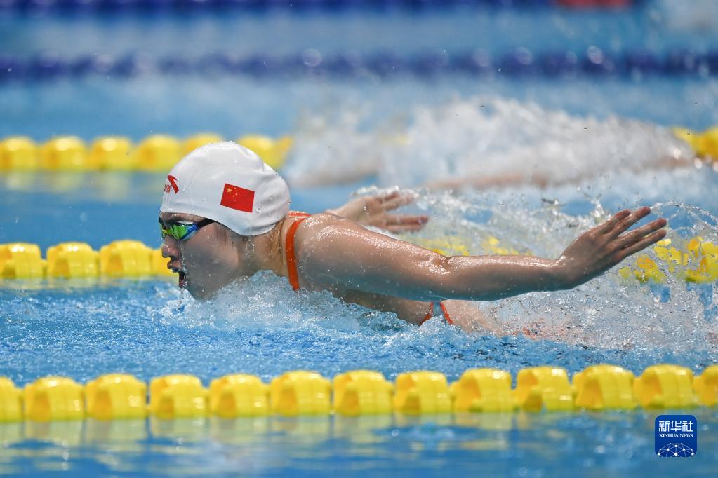 当日,在浙江杭州举行的“韵味杭州”2023年全国游泳冠军赛女子100米蝶泳决赛中,江苏卡尔美队选手张雨霏以56秒48的成绩获得冠军。