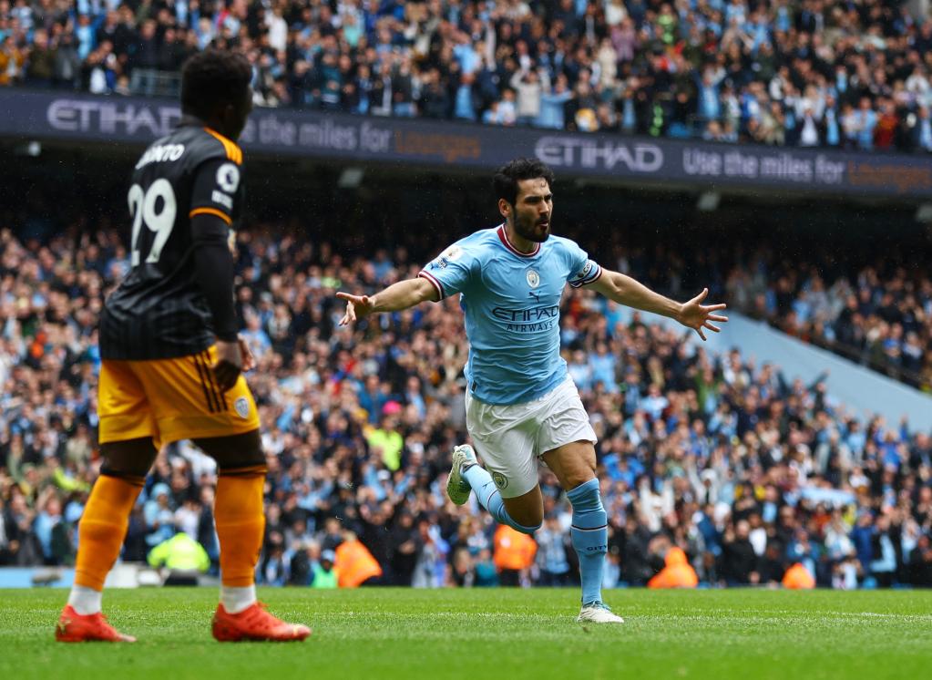易边再战,福登在比赛渐入尾声之时杀入禁区被对方球员放倒,曼城获得点球机会。作为队内的头号点球手,哈兰德把主罚机会让给京多安,有意促成队友上演“帽子戏法”。然而,京多安的射门击中立柱弹出,利兹联则紧接着就利用阿坎吉的解围失误追回一分。