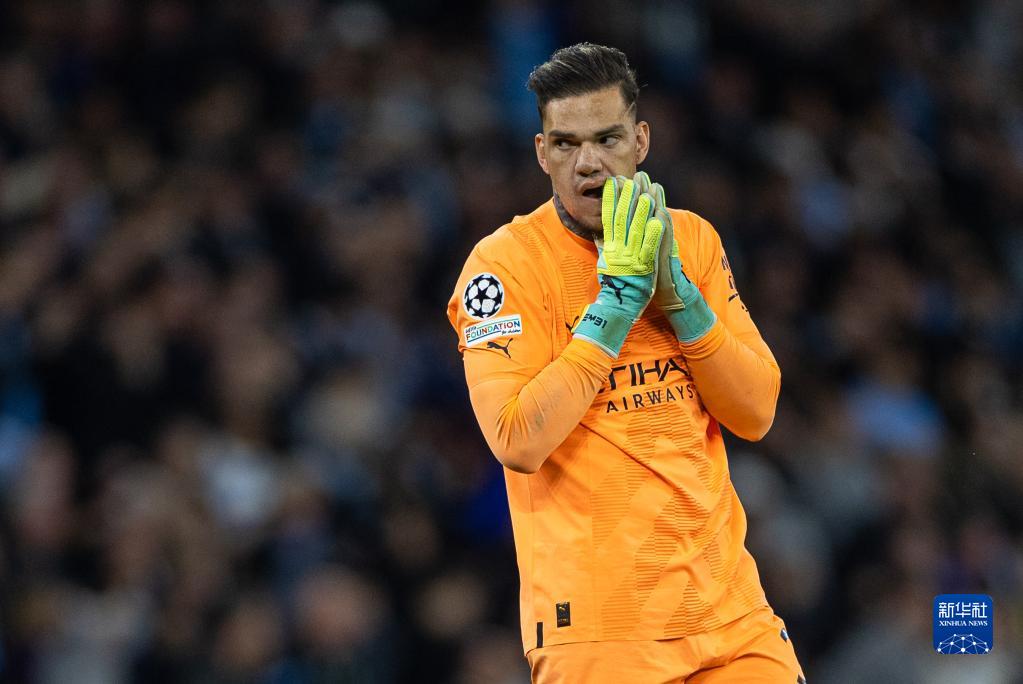 5月17日,曼彻斯特城队门将埃德森在比赛中。新华社发