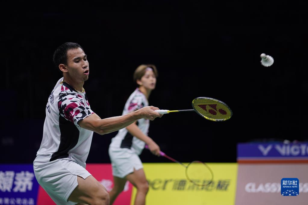5月18日,泰国组合德差波(左)/沙西丽在混双比赛中,他们以2比0战胜印度尼西亚组合德扬/维德佳佳。新华社记者 李博 摄