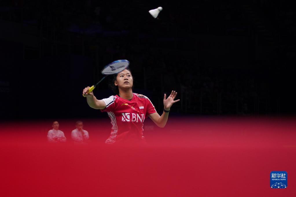 5月18日,印度尼西亚队选手瓦尔达尼在女单比赛中,她以1比2不敌泰国队选手李美妙。新华社记者 李博 摄