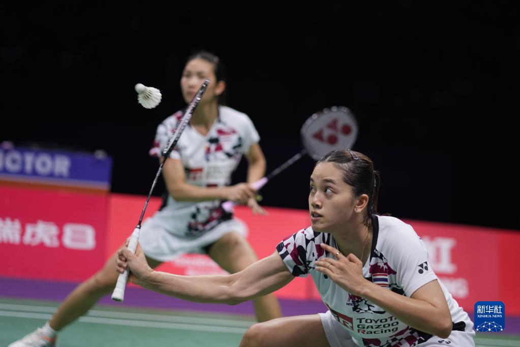 5月18日,泰国组合琼卡潘/拉温达(前)在女双比赛中,她们以1比2不敌印度尼西亚组合拉哈尤/西蒂。新华社记者 李博 摄