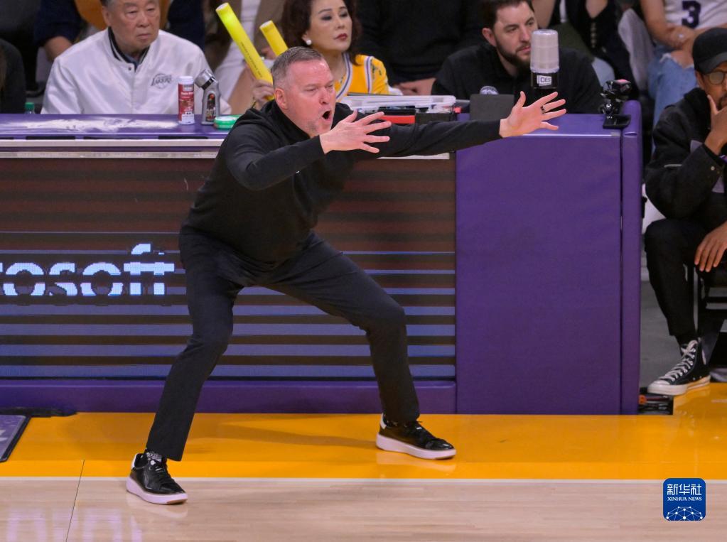 5月20日,掘金队主教练迈克·马龙在场边指挥。新华社/路透