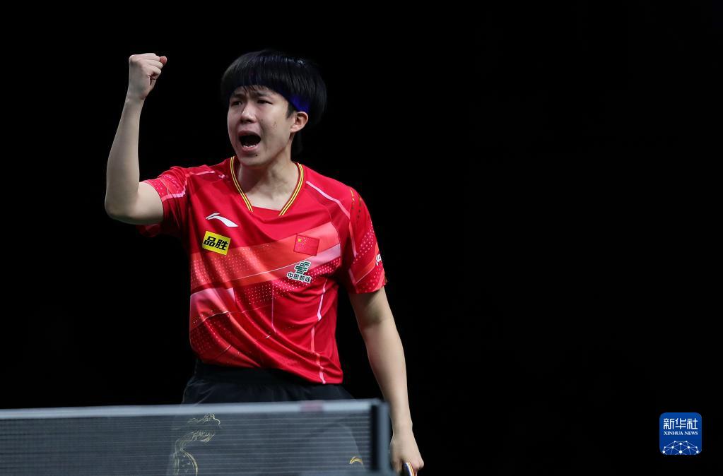 5月22日,王楚钦庆祝胜利。新华社记者 王东震 摄