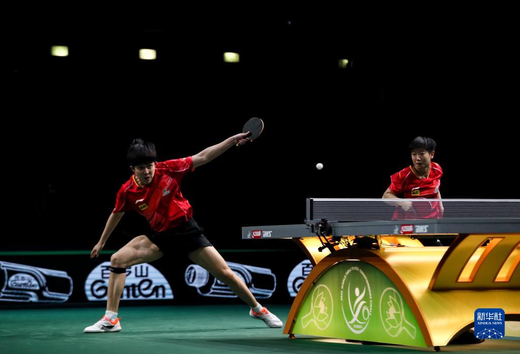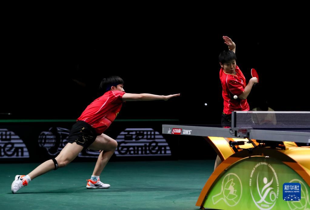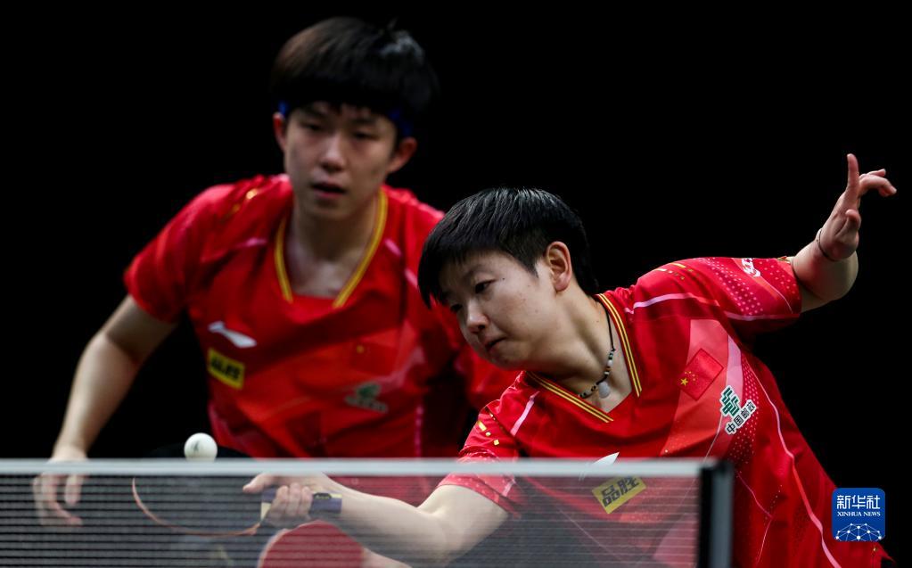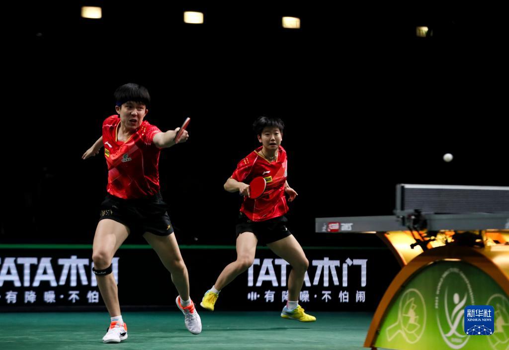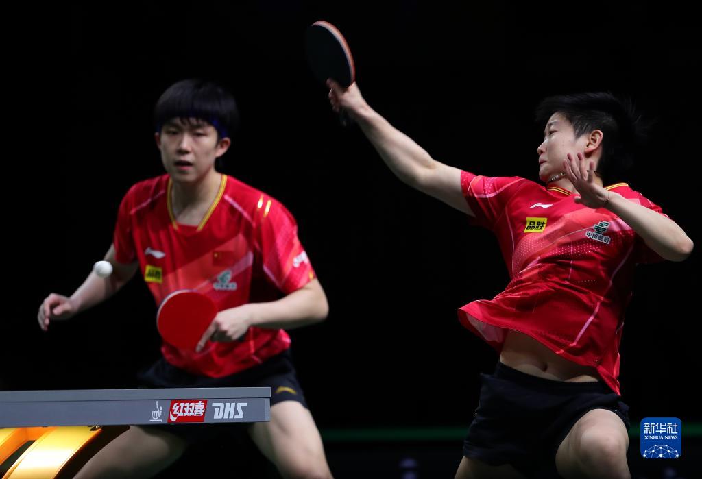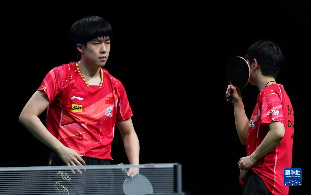 5月22日,王楚钦/孙颖莎(右)在比赛中。新华社记者 王东震 摄