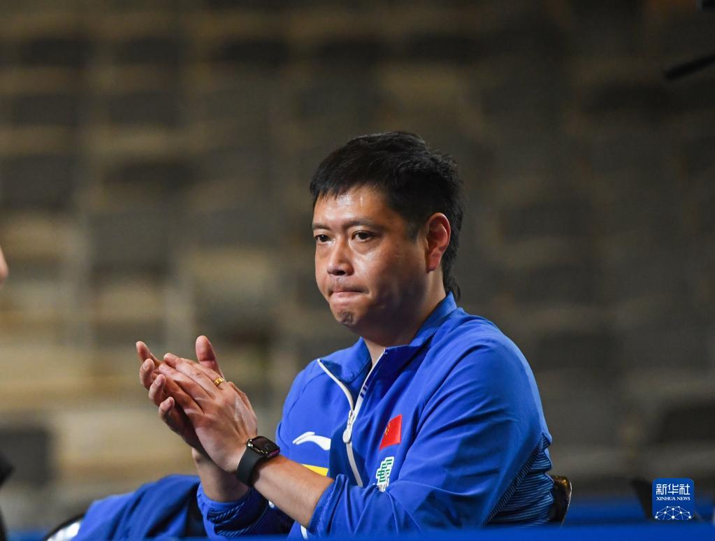 5月22日,教练邱贻可为林诗栋/蒯曼鼓掌。新华社记者 李亚辉 摄