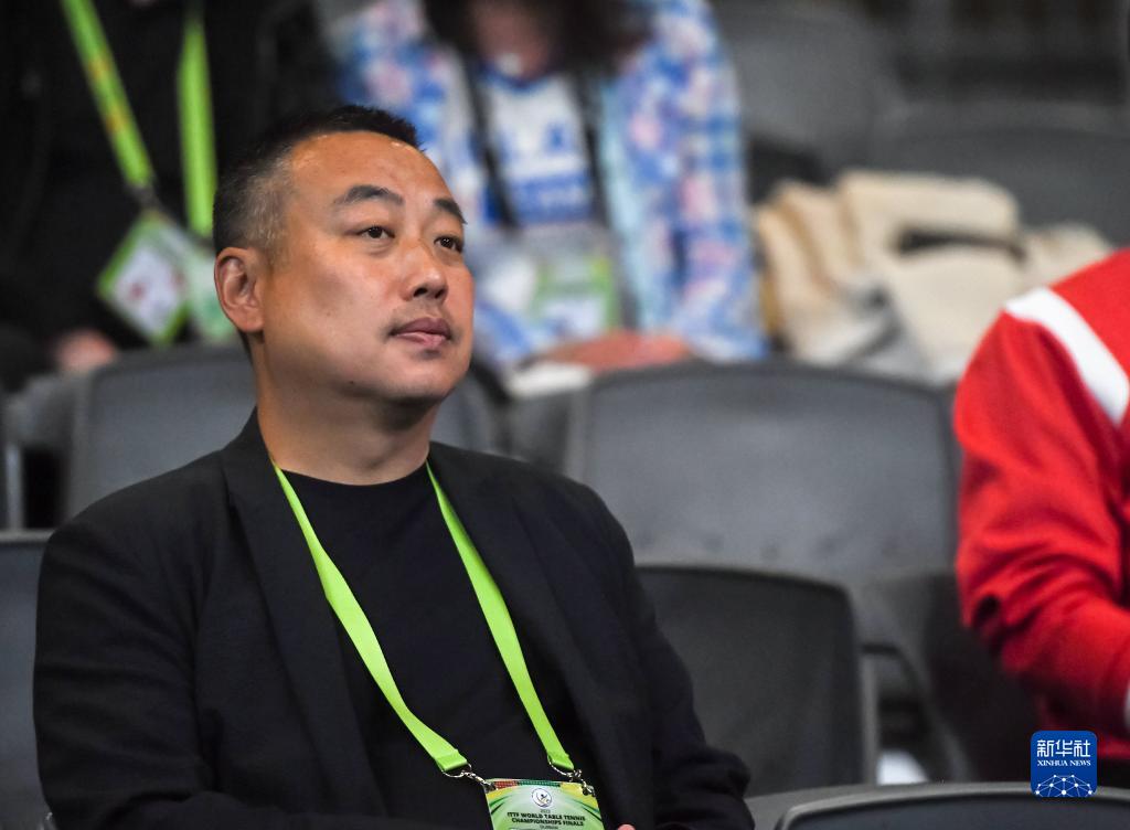5月22日,中国乒乓球协会主席刘国梁观看林诗栋/蒯曼的比赛。新华社记者 李亚辉 摄