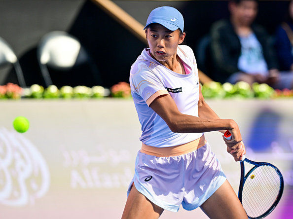 5月22日,张帅在比赛中回球。图片来自WTA官方社交媒体账号