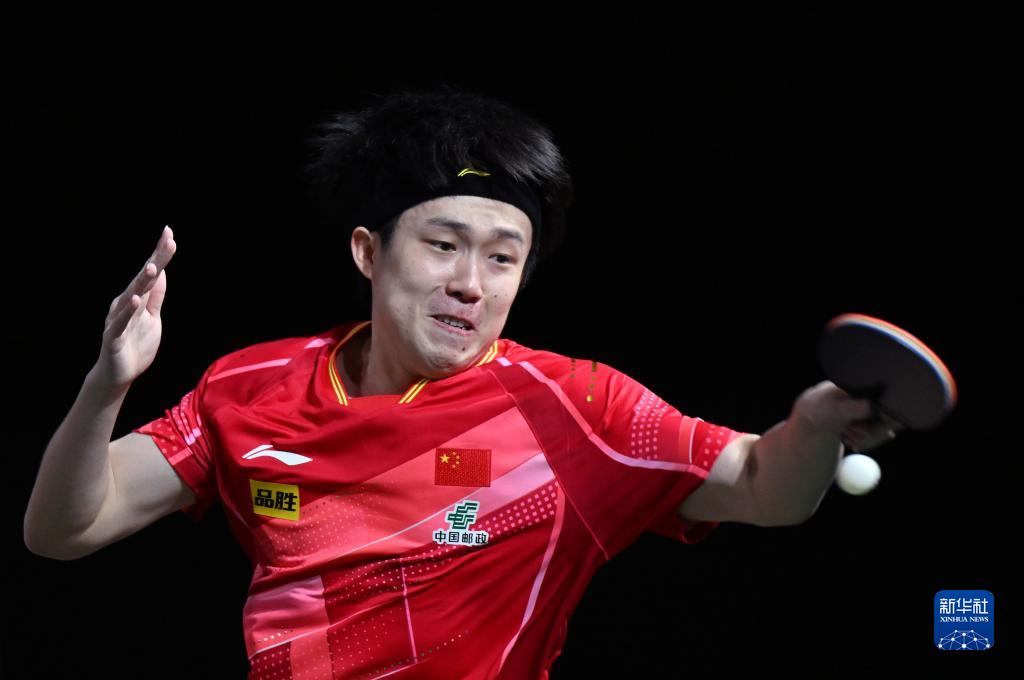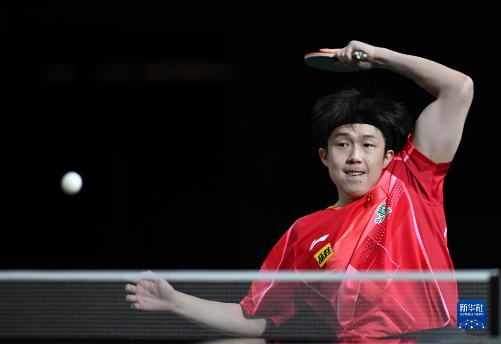 5月23日,王楚钦在比赛中回球。新华社记者 陶希夷 摄