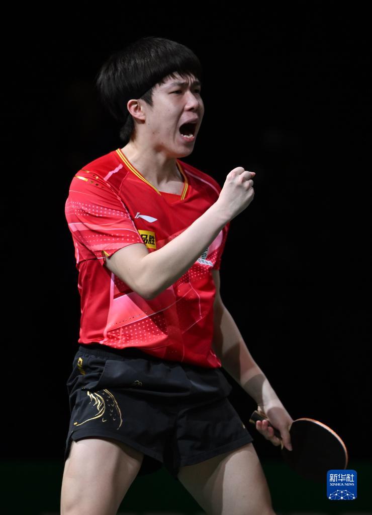 5月23日,王楚钦在比赛中庆祝。新华社记者 陶希夷 摄
