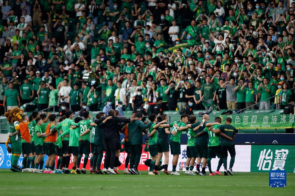 5月23日,北京国安队成员赛后向球迷致意。新华社记者 王丽莉 摄