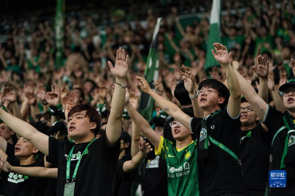 5月23日,北京国安队球迷为球队加油呐喊。新华社记者 彭子洋 摄