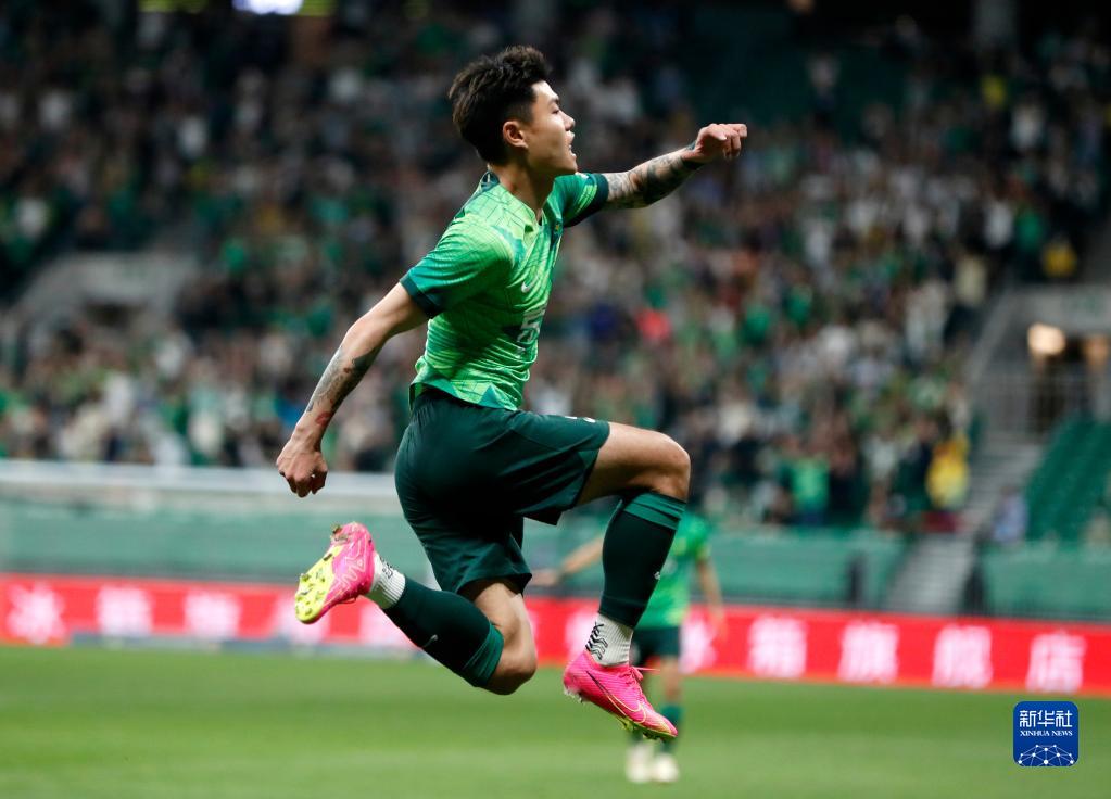 5月23日,北京国安队球员王子铭攻入一球。新华社记者 王丽莉 摄