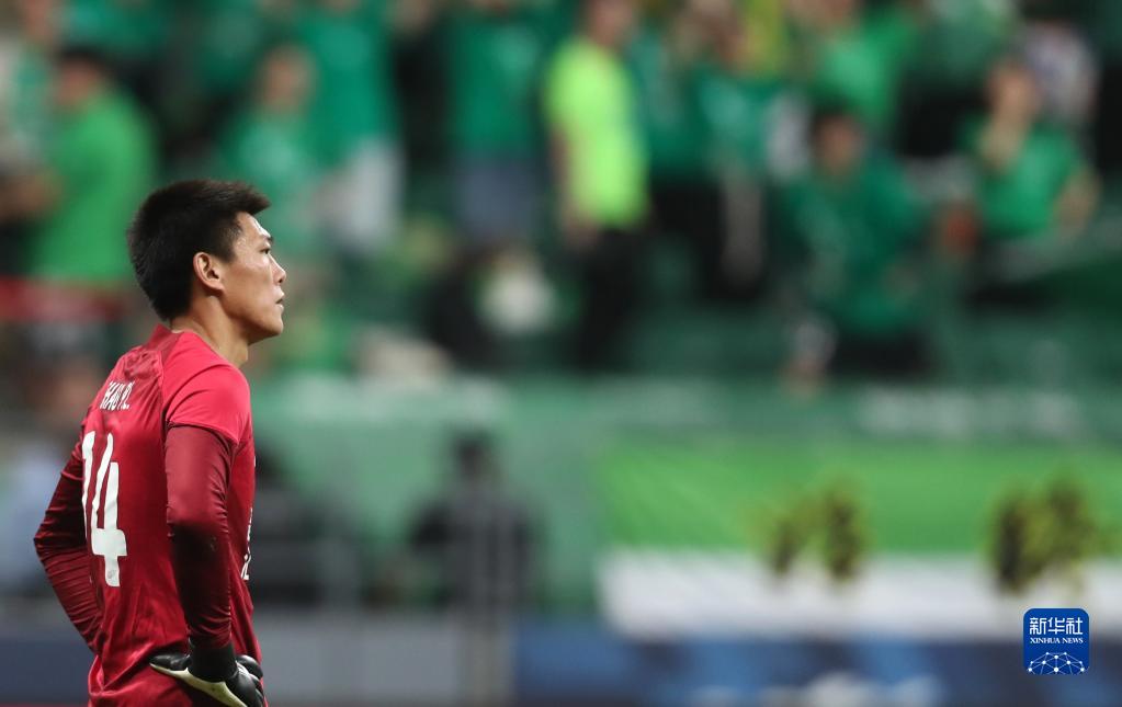 5月23日,北京国安队守门员韩佳奇门前救险。新华社记者 王丽莉 摄