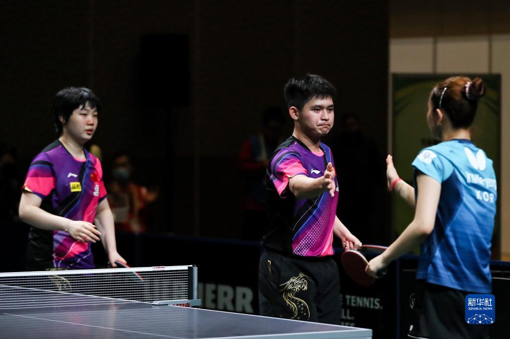 当日,在南非德班进行的2023年世界乒乓球锦标赛混合双打第三轮比赛中,中国组合林诗栋/蒯曼以3比0战胜韩国组合赵大成/金娜英,晋级八强。