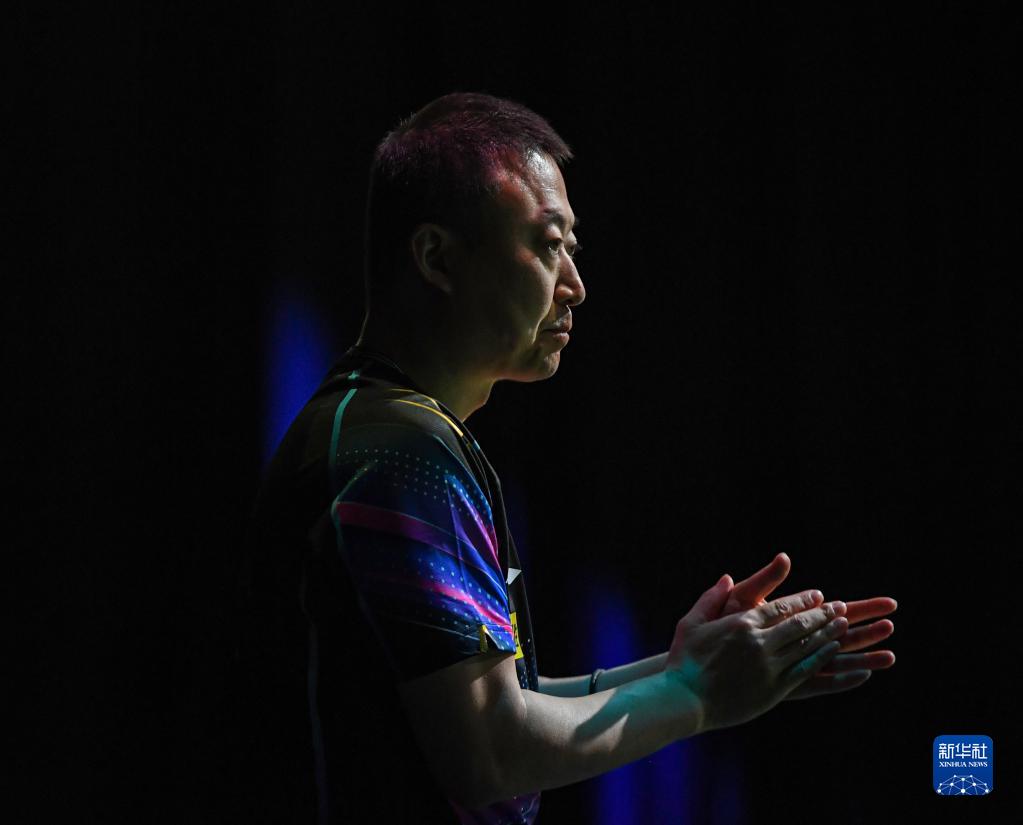5月25日,教练马琳在比赛中为王曼昱鼓掌。新华社记者 李亚辉 摄