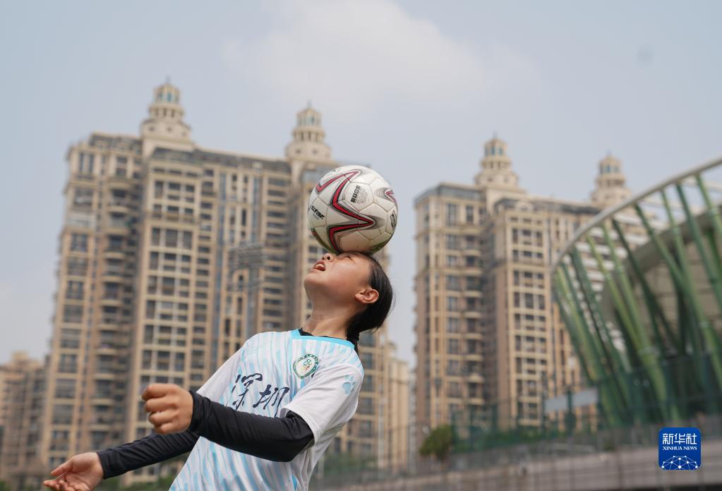 4月15日,练昱彤在深圳宝安体育场练习花式足球。新华社记者 毛思倩 摄