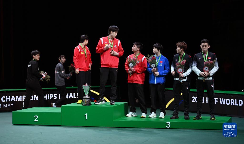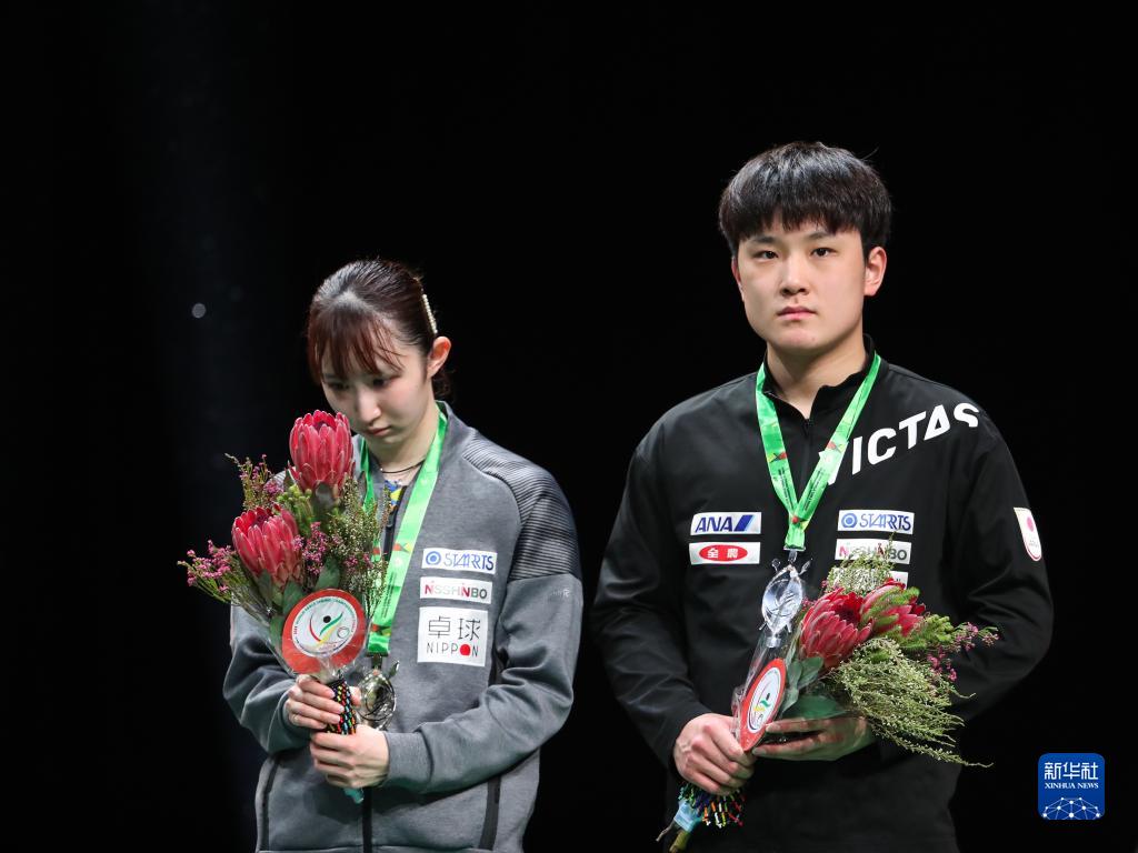 5月26日,张本智和(右)/早田希娜在颁奖仪式上新华社记者 韩旭 摄