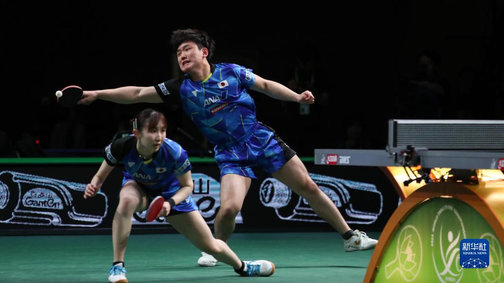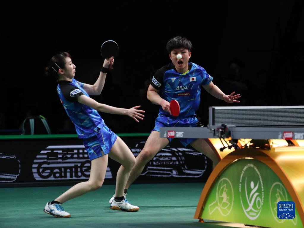 5月26日,张本智和(右)/早田希娜在比赛中。新华社记者 韩旭 摄