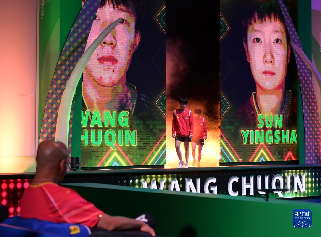 5月26日,王楚钦/孙颖莎(右)在比赛前出场。新华社记者 韩旭 摄