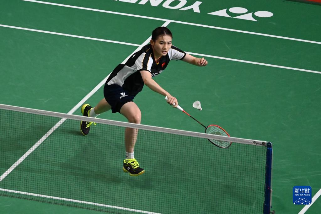 当日,在吉隆坡举行的2023年马来西亚羽毛球大师赛女单四分之一决赛中,中国选手韩悦以2比0战胜泰国选手布桑兰·恩布鲁庞,晋级半决赛。
