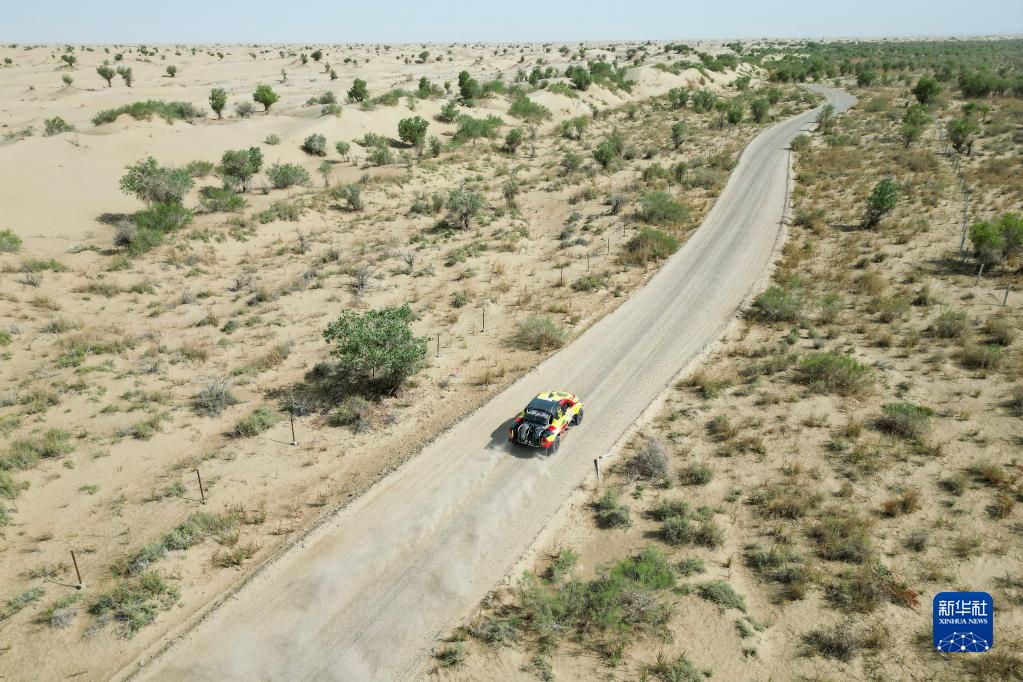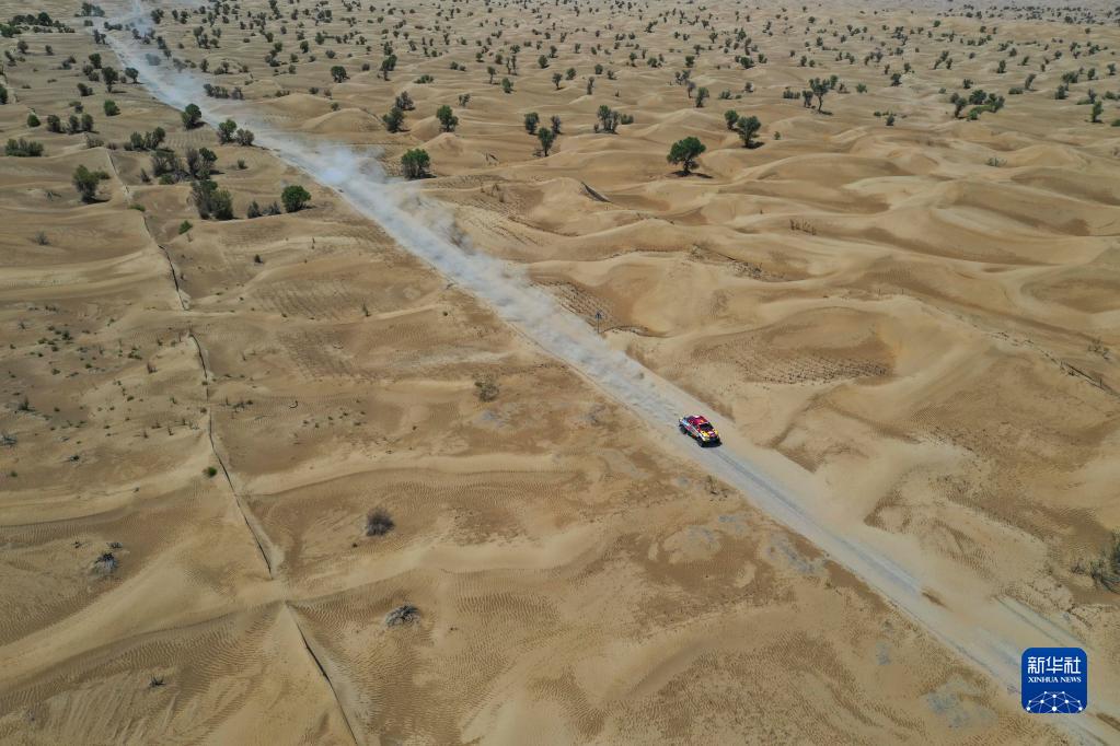 当日,2023年中国环塔(国际)拉力赛暨中国汽车越野拉力锦标赛新疆分站赛完成第六赛段的比赛。该赛段位于新疆和田地区的沙漠中,全长约286公里,包括砂石路、沙丘、林间土路等多种类型。
