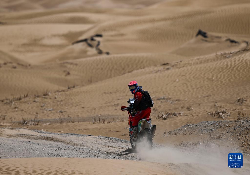 5月28日,重庆凯越越野车队车手内尔斯·泰里克驾驶摩托车疾驰在赛道上。新华社记者 郝昭 摄