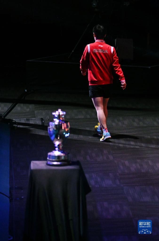 5月28日,孙颖莎在开赛前走过冠军奖杯。新华社记者 陶希夷 摄
