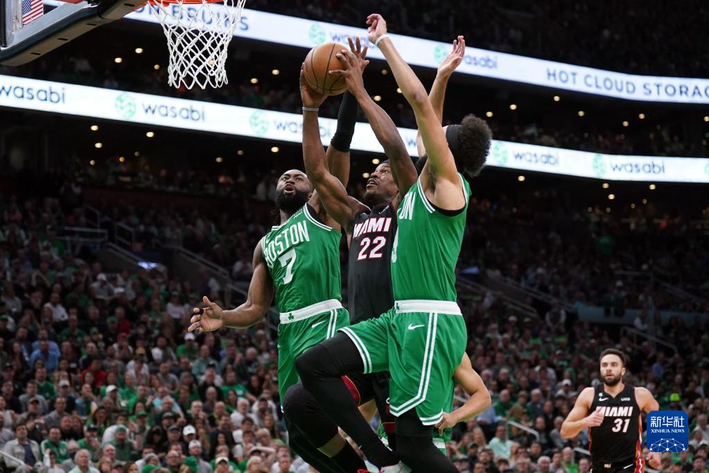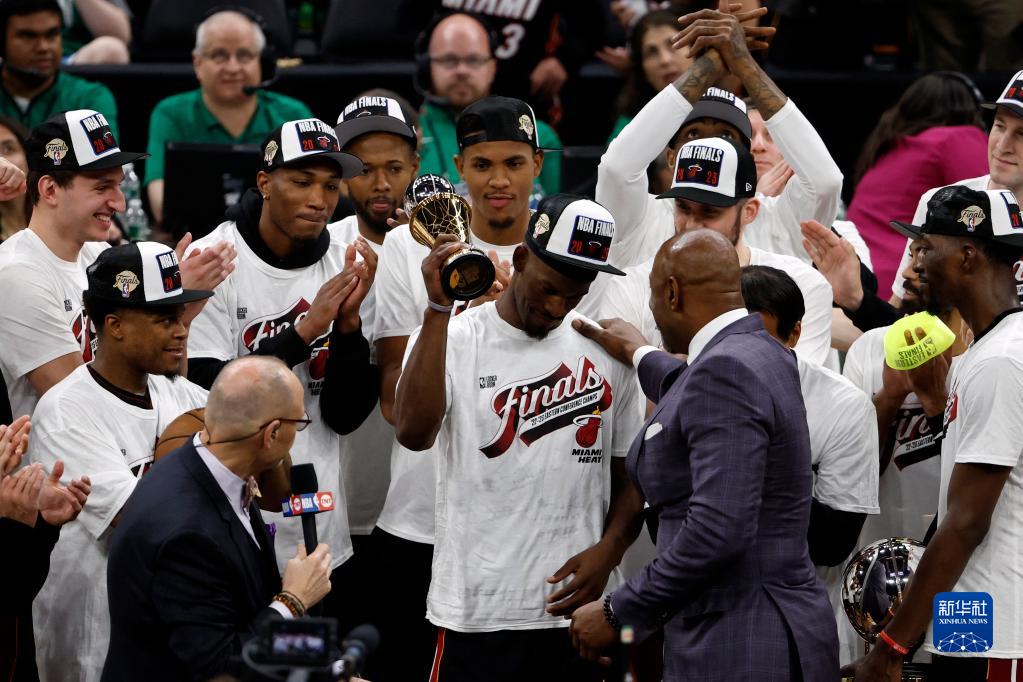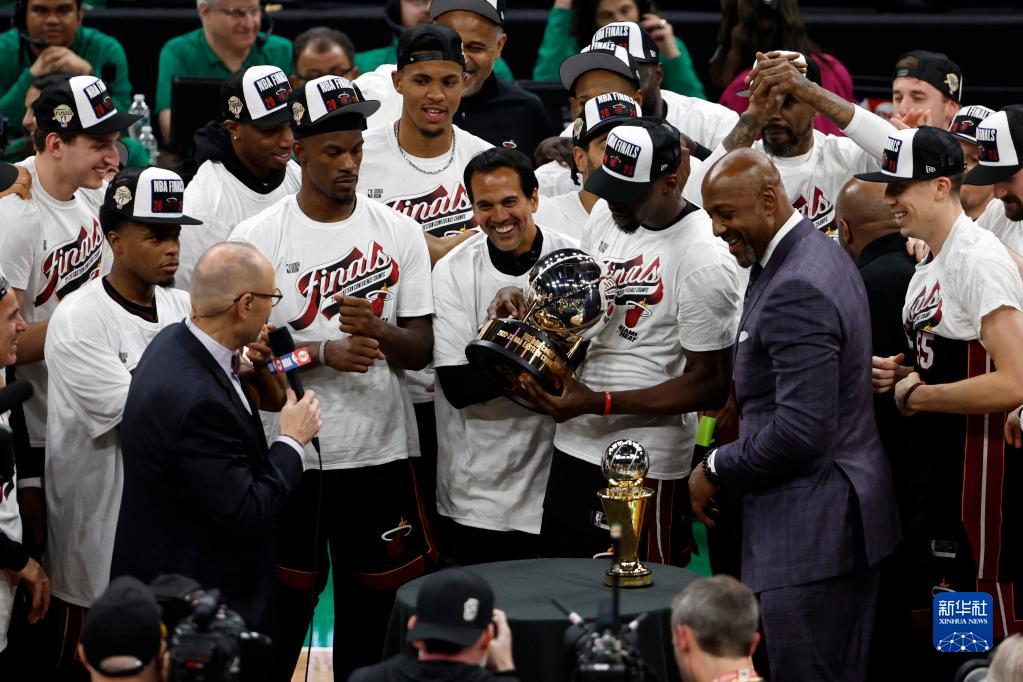 当日,在2022-2023赛季NBA联赛东部决赛第七场比赛中,迈阿密热火队客场以103比84战胜波士顿凯尔特人队,从而以4比3的总比分夺得东部冠军,晋级总决赛。