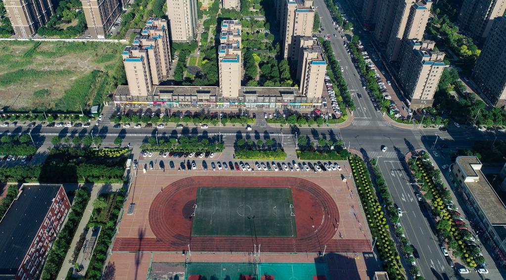 图为福建福州市智慧体育公园内智慧跑道、智慧健身器材及健身驿站等(无人机照片)。新华社记者 林善传 摄
