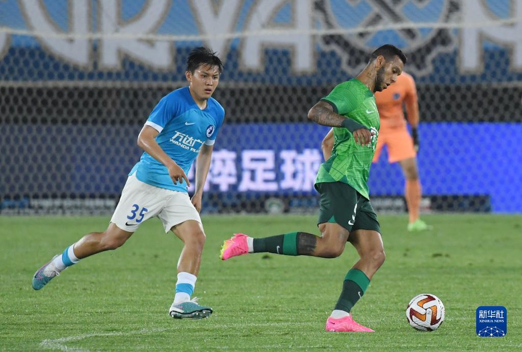 6月9日,北京国安队球员德索萨(右)在比赛中带球进攻。新华社记者 陈为 摄