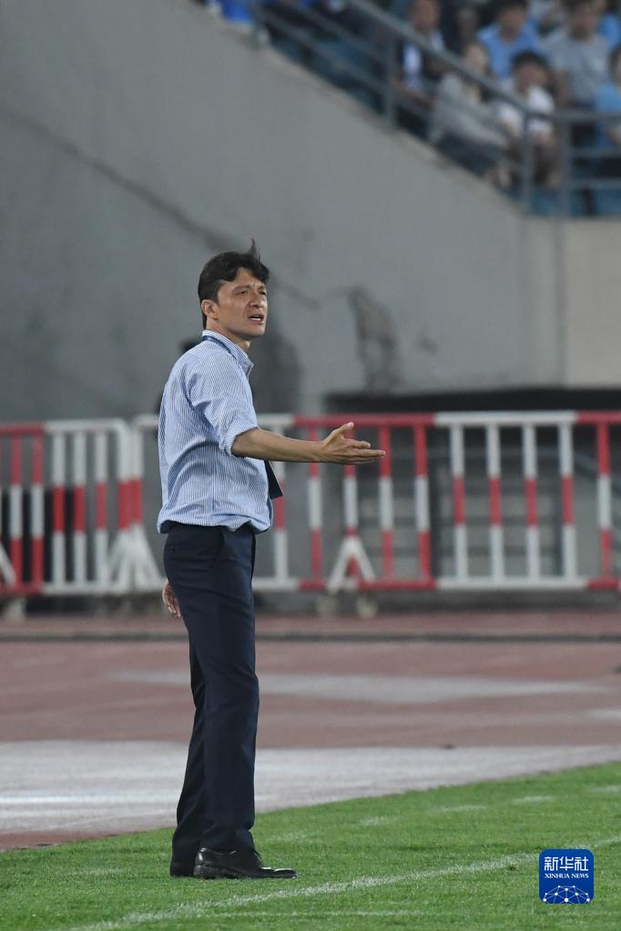 6月9日,大连人队主教练谢晖在场边指挥。新华社记者 陈为 摄