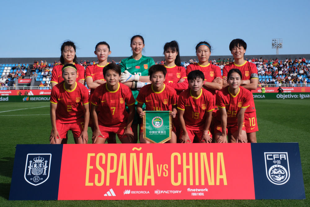 图为4月11日,中国女足首发球员在当天于西班牙伊维萨进行的一场热身赛前。新华社记者 孟鼎博 摄