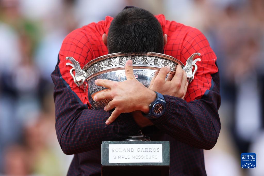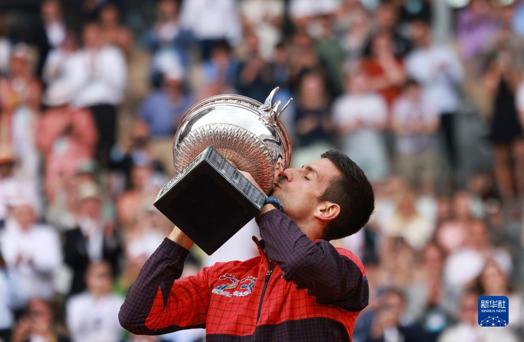 6月11日,焦科维奇在颁奖仪式上亲吻奖杯。新华社记者 高静 摄