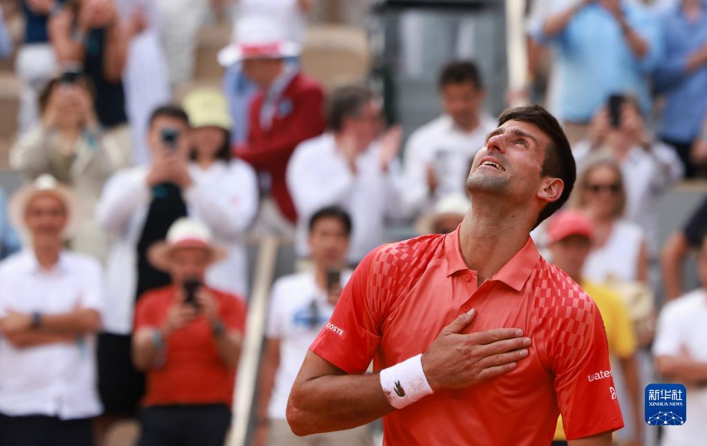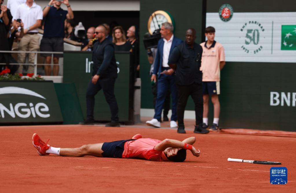 6月11日,焦科维奇获胜倒地。新华社记者 高静 摄