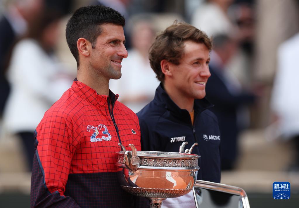 6月11日,焦科维奇(左)、鲁德在颁奖仪式上。新华社记者 高静 摄