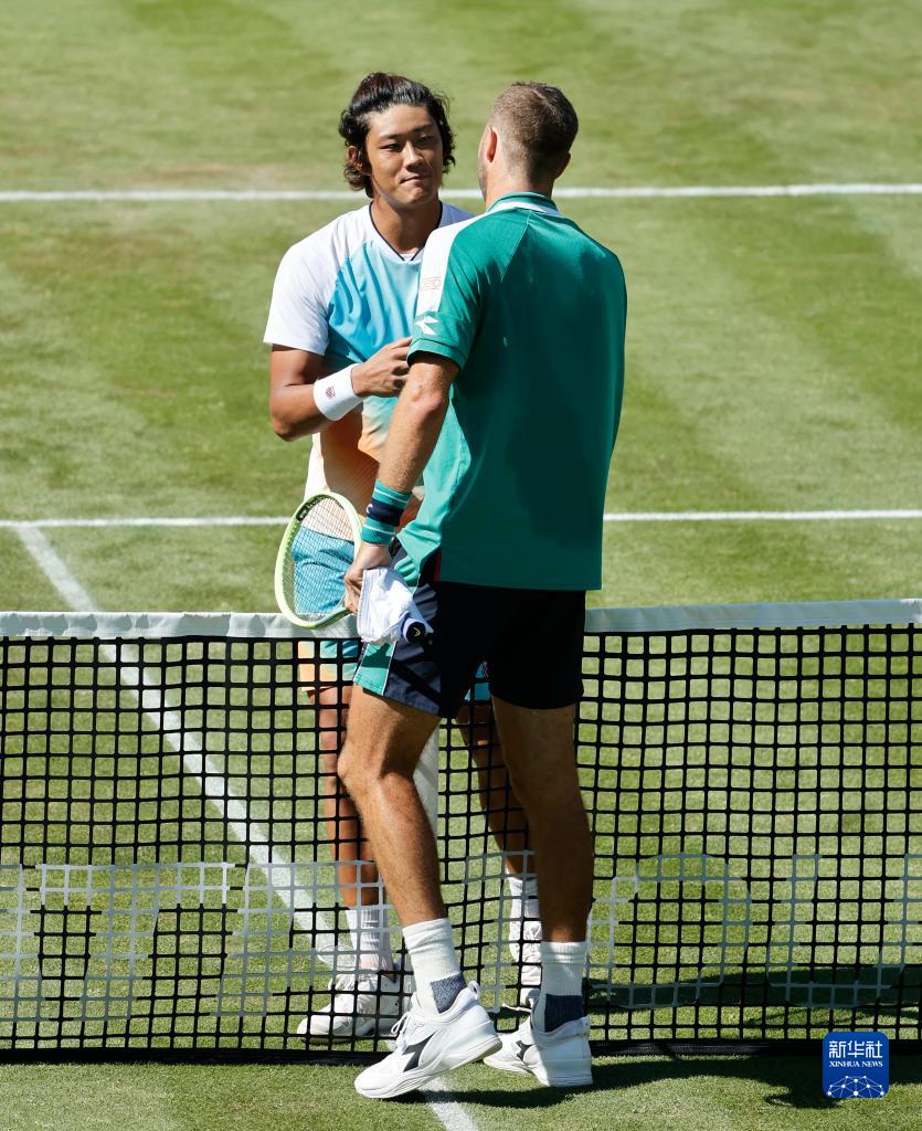 6月13日,张之臻(左)在比赛后与施特鲁夫致意。新华社发(菲利普·鲁伊兹 摄)