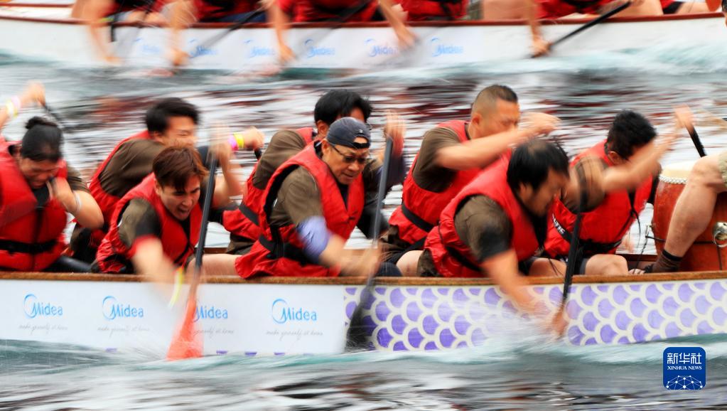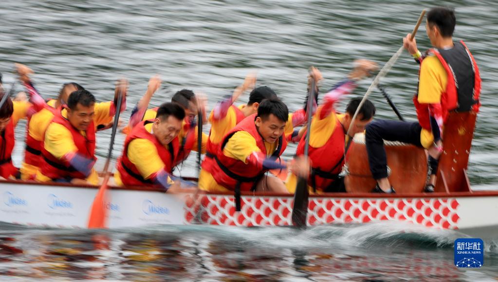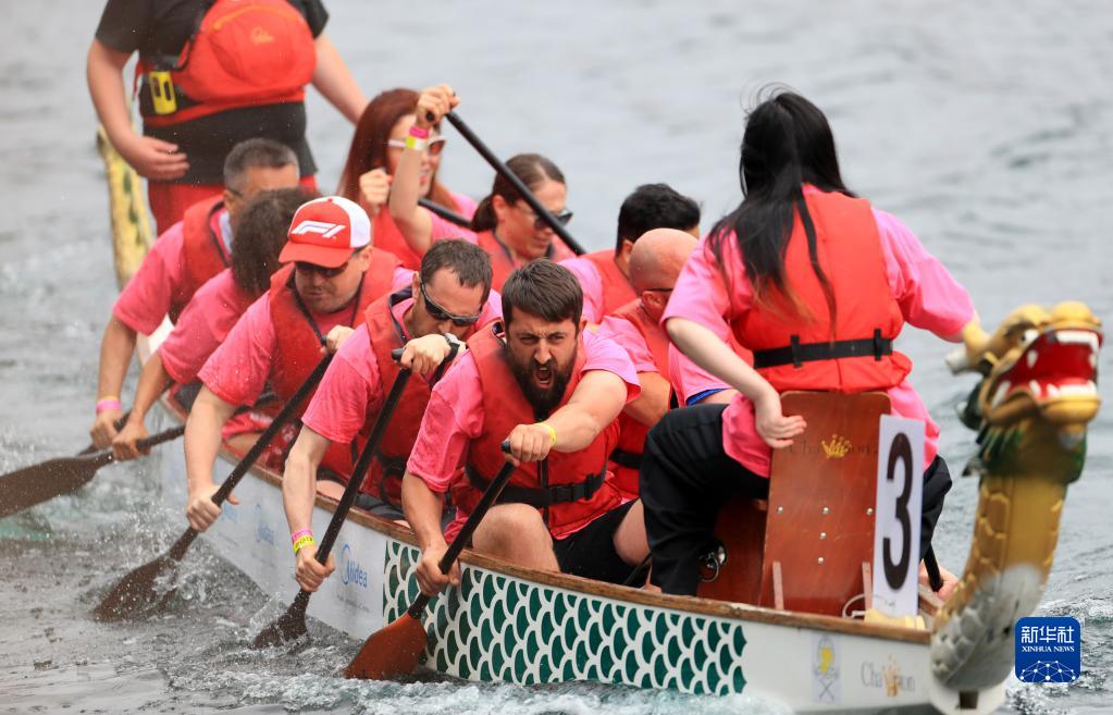 6月17日,新华联谊会龙舟队参加“全英中华端午龙舟会”。新华社记者 李颖 摄