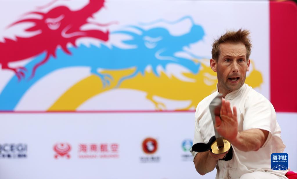 6月17日,表演者在“全英中华端午龙舟会”上表演武术。新华社记者 李颖 摄