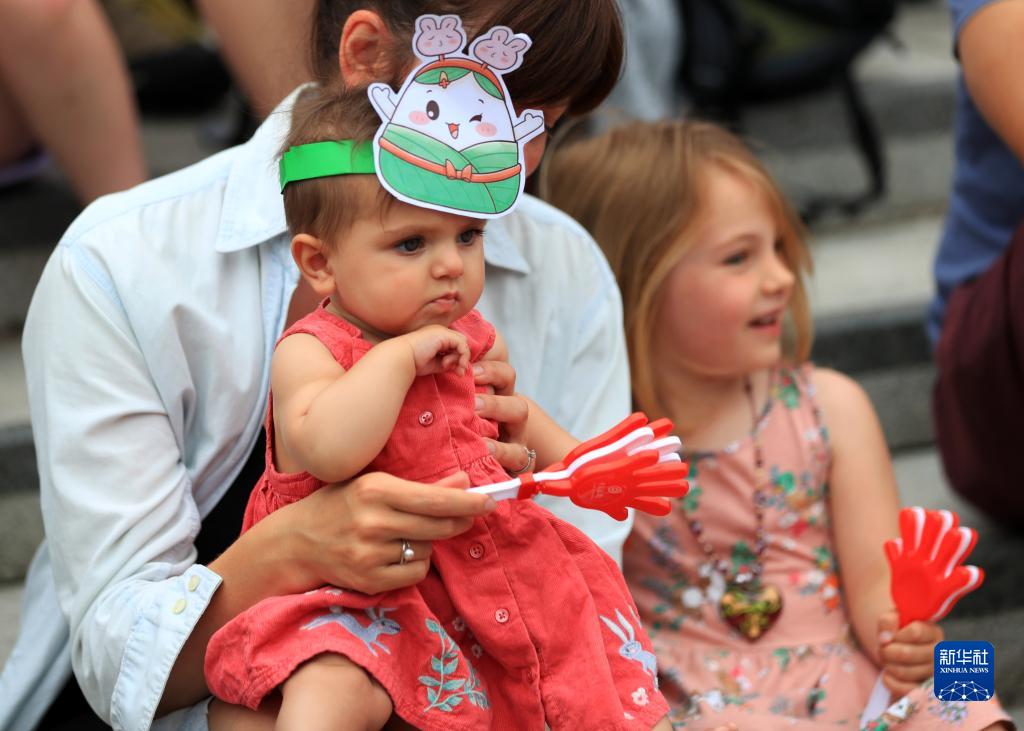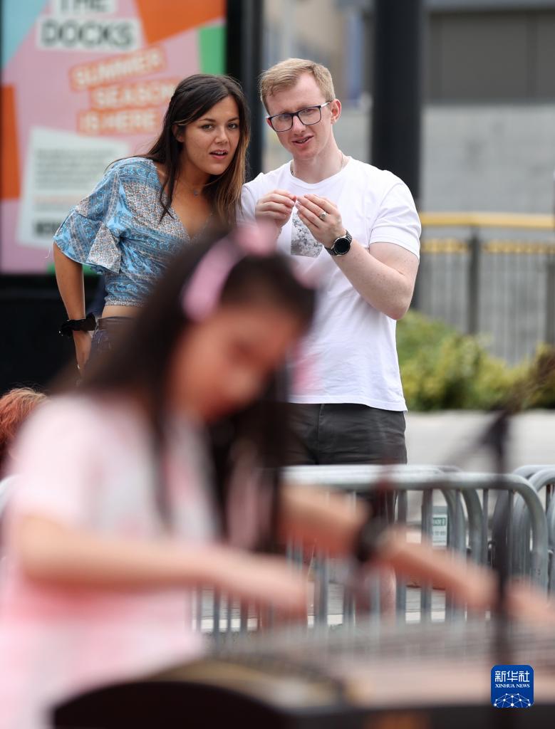 6月17日,在“全英中华端午龙舟会”上,当地民众观看古筝表演。新华社记者 李颖 摄