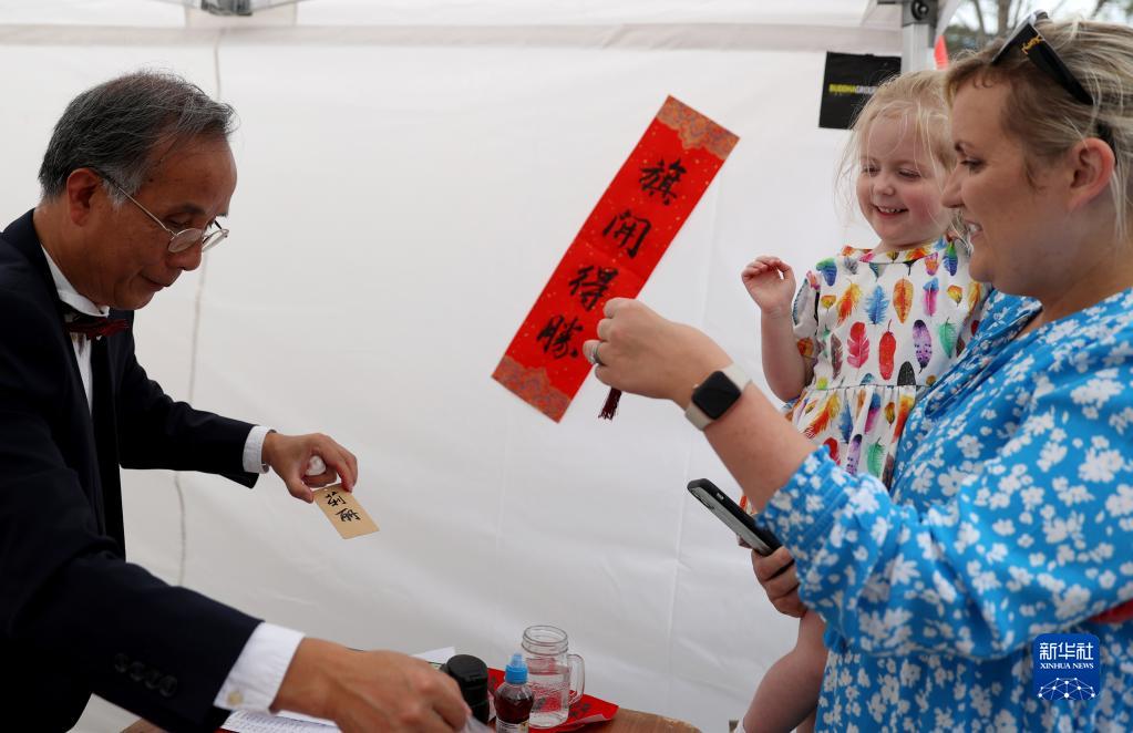 6月17日,在“全英中华端午龙舟会”上,工作人员为一名叫“Lily”的英国女孩写中文名。新华社记者 李颖 摄