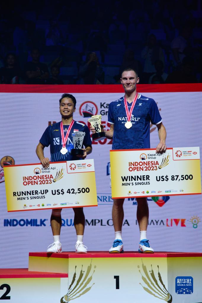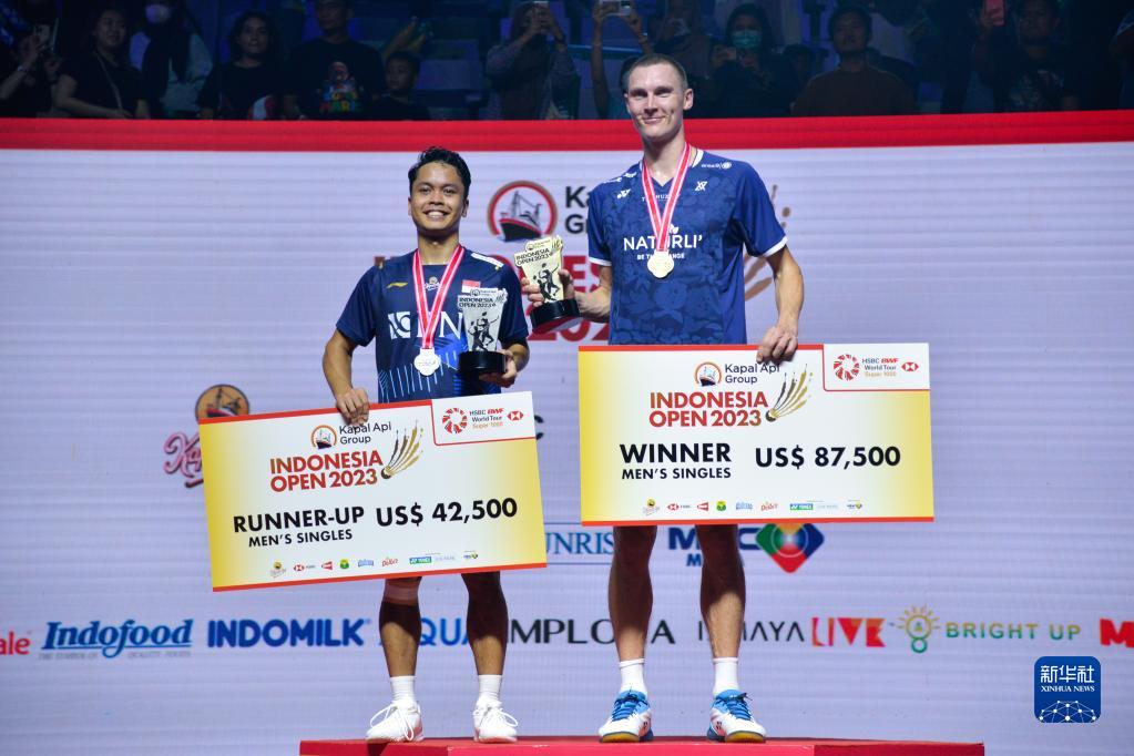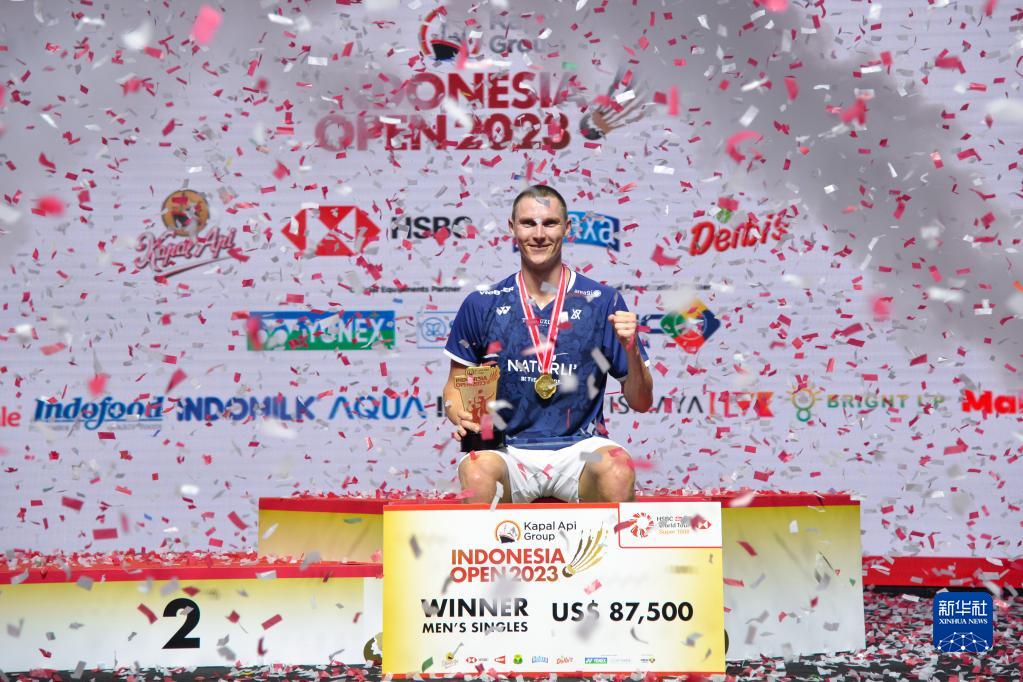 当日,在雅加达举行的2023年印度尼西亚羽毛球公开赛男单决赛中,丹麦选手安赛龙以2比0战胜印度尼西亚选手金廷,夺得冠军。