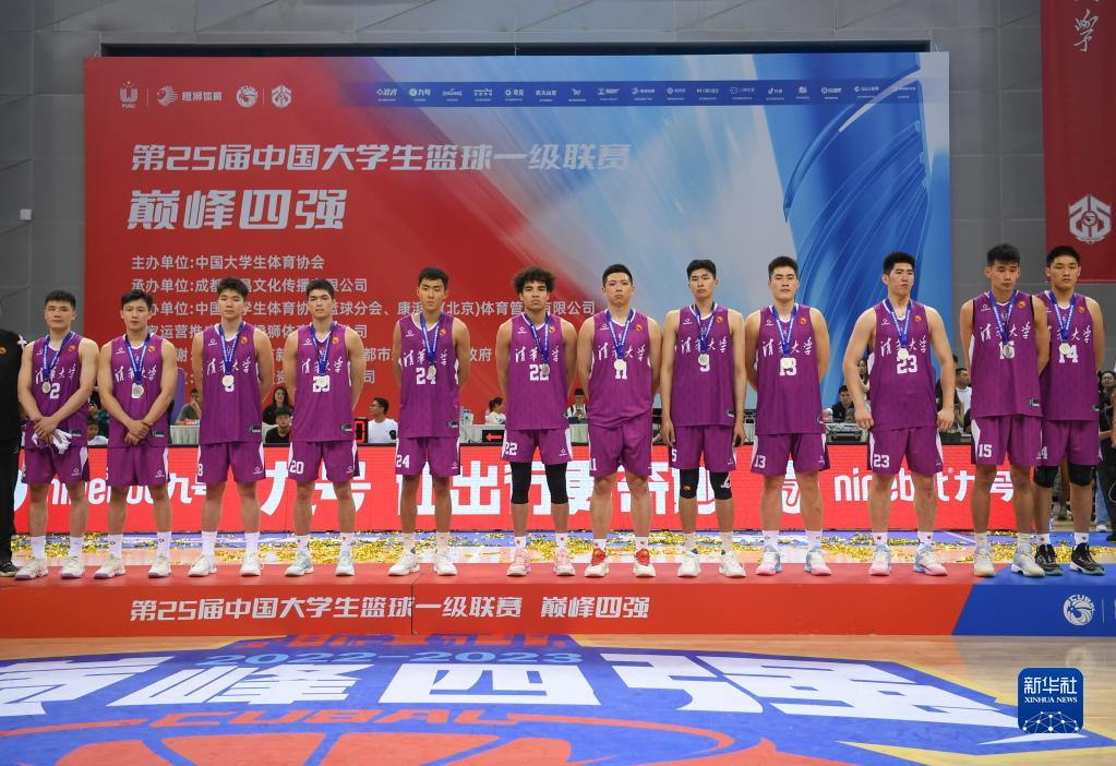 6月18日,亚军清华大学队在领奖台上合影。新华社记者 胥冰洁 摄