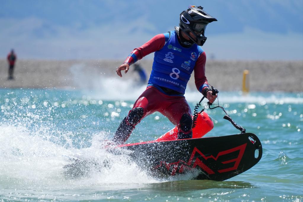 全国电动冲浪板联赛在赛里木湖月亮湾举行,设6个项目,其中,来自江苏奇峰俱乐部的陀理宏和四川体育职业学院的施玉春分获公开级男、女子环圈竞速赛冠军。