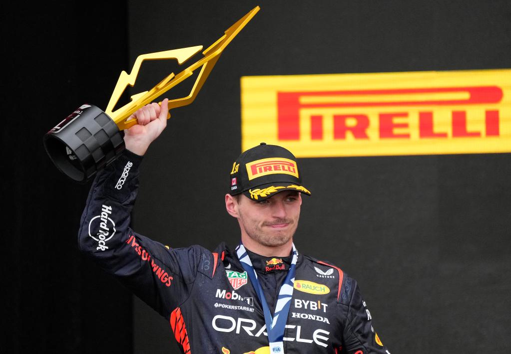 6月18日,维斯塔潘在颁奖仪式上。新华社/路透