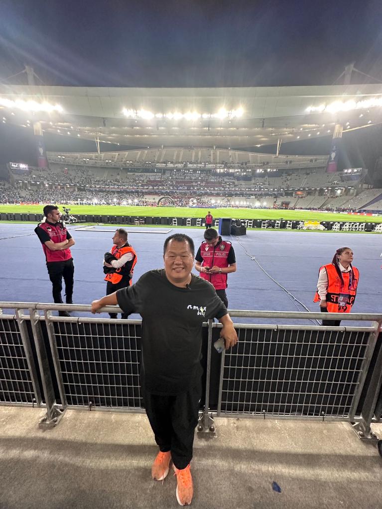 ↑“元宝女足”教练徐召伟在欧冠决赛现场。(受访者供图)